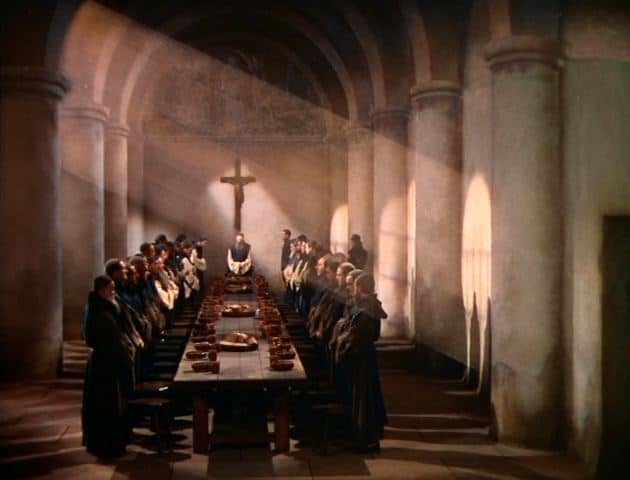 Today I will focus in on two glorious vintage Jack Cosgrove effects shows – both produced for David O’Selznick in the thirties, and notable for being among the very first 3 strip technicolour matte shot films. The first one here today, THE GARDEN OF ALLAH was made in 1936 and was to a large extent a learn as we go along exercise for the burgeoning new Selznick photographic effects department. I’ve written much about Cosgrove already so I’ll not repeat myself other than to say that with friend and associate, effects cinematographer Clarence Slifer, Cosgrove was tasked with the until then unknown world of compositing glass paintings onto the 3 strip technicolour process, a task requiring much experimentation of use of filtration, incandescent light sourse on the artwork and above all else much trial and error testing of the unforgiving precision in negative developing…