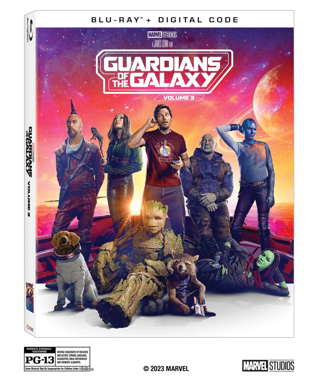 In Marvel Studios’ Guardians of the Galaxy Vol. 3, our beloved band of misfits is looking a bit different these days. Peter Quill (Chris Pratt), still reeling from a terrible loss, must rally his team and embark on a dicey, action-packed mission to defend the universe and protect Rocket. Meanwhile, a new, unpredictable force threatens to bring the Guardians down for good. Guardians of the Galaxy Vol. 3 is written and directed by James Gunn.