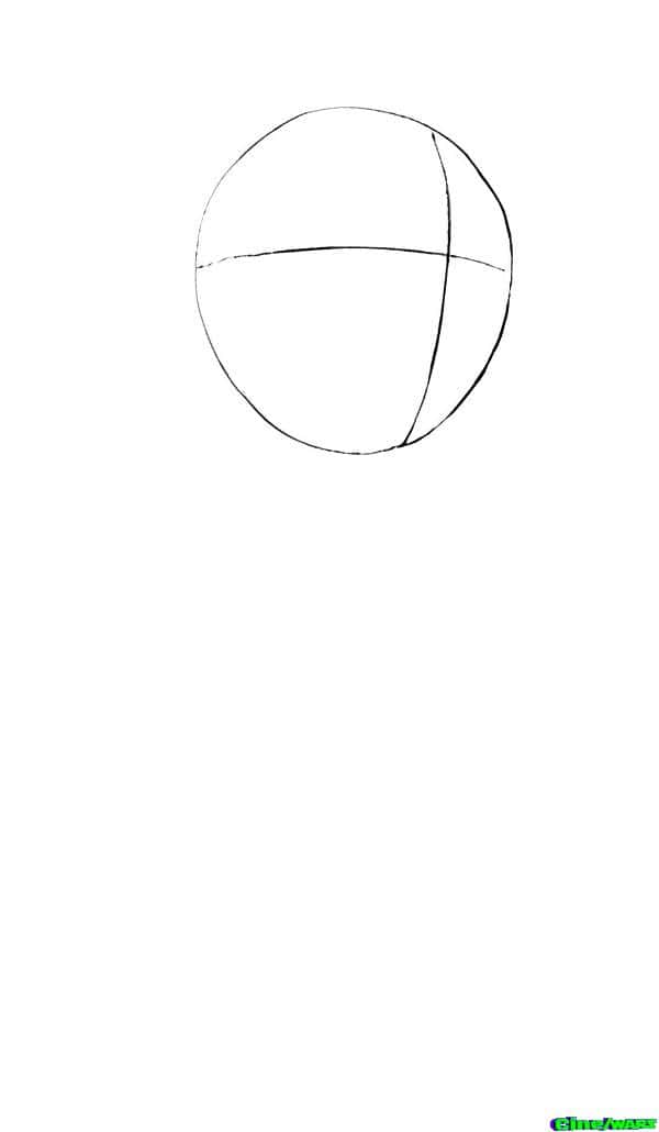 First start with a basic shape for where you want her head. Make sure to draw lines for where you want to put her eyes and nose!