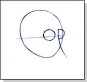 Greedo has very round, large eyes so place them on the horizontal line you drew (remember, you will erase this line later!). Draw a full circle for the left eye, and a half circle for the right, placing it up against the curved line you drew in Step One.