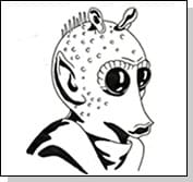 Among an endless variety of bounty hunters plotting and scheming throughout the galaxy, Greedo is one of the most interesting to draw. With his large, bulbous eyes, pointy ears and scaly skin, his appearance is a combination of alien and reptile.