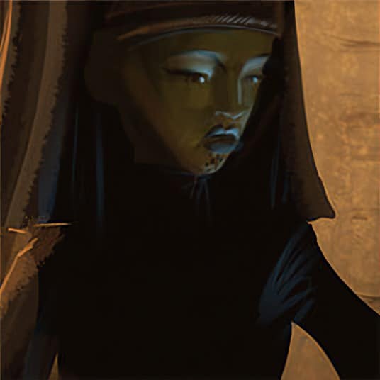 Kenobi and Skywalker emerge from the shadows while Cody and the clone troopers remain hidden. Obi-Wan begins a dialogue with the Queen, while Anakin is ready for action. Kenobi orders the release of Luminara, who is surprised to see the Jedi. The shrieking Queen Karina refuses to recognize the Jedi’s authority. She wishes not to destroy the Jedi, however. She desires to control them. Kenobi watches, captivated, as one of the Geonosian zombies carries a small egg in his hand. From it emerges a wriggling worm — the instrument of the Queen’s mind control.