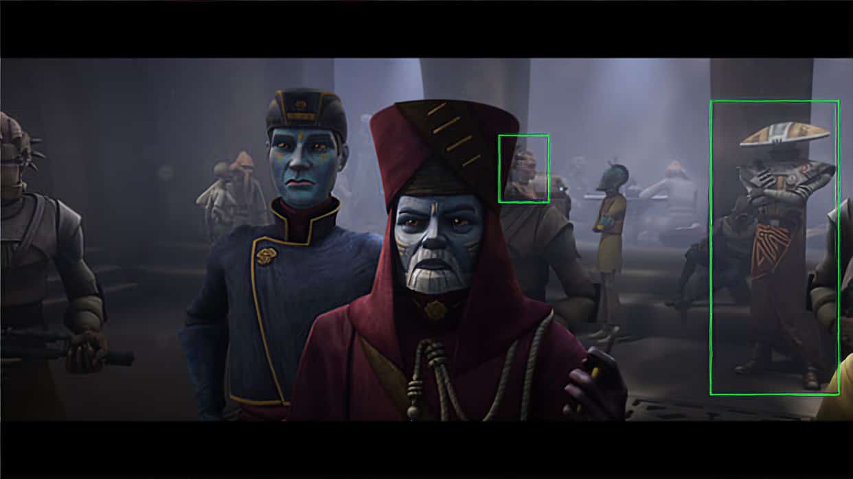 - Embo and Sugi from the season two episode “Bounty Hunters” have cameo appearances inside Jabba the Hutt’s palace.