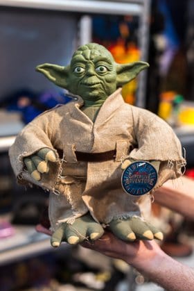 Much of the art on the George Lucas’ Super Live Adventure’s merchandise looks just a little off. A Yoda doll is just slightly too rotund and ugly. A bag printed with the art from the official poster transforms iconic faces into cartoonish caricatures. A hand towel sporting the logos from each film represented in the show looks like it could’ve been put together with clip art.